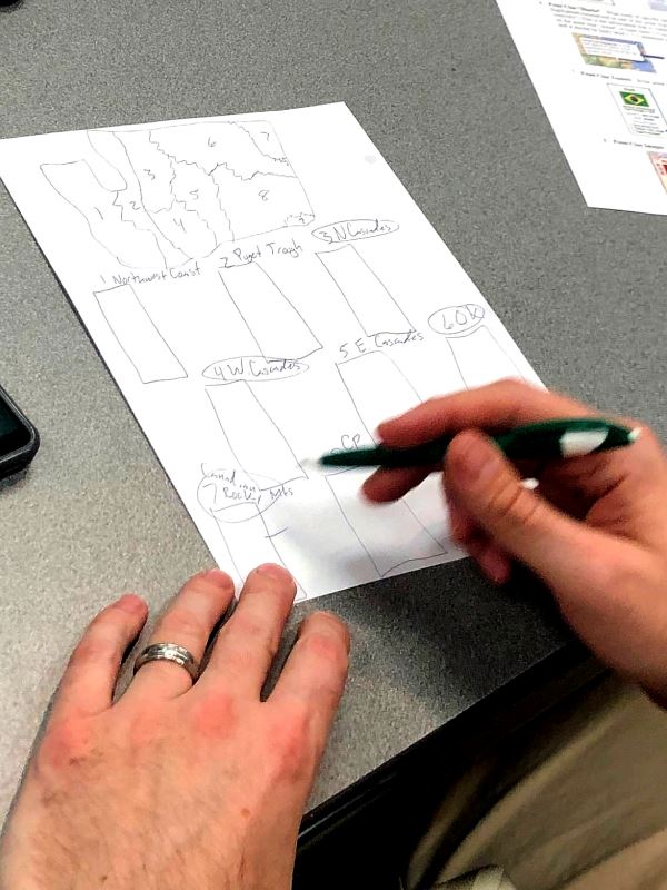 Six participating teachers were in attendance for the fifth session in the Learning Through Maps/Mapping Our Learning workshop series. Since we hadn't been together in a while, we began with a "Winter Break Bingo" activity to share a little bit about what had kept us busy during the break. The game emphasized our geoliteracy skills while sharing some of the specific places we had eaten, shopped, relaxed and traveled over the break.